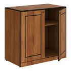 Топ тумбы, фасады и нижний цоколь из МДФ т.16 мм, декорированы методом глубокого фрезерования, финишная отделка лаком. Каркас из ЛДСП т.16 мм, видимые торцы облицованы кромкой ПВХ 0,4 мм. Каркас из 2-х секций, в каждой секции полка съемная. Правая секция под холодильник без задней стенки. Внутренние размеры ниши под холодильник: 446х512х810. Фасад комплектуется петлями с доводчиками.