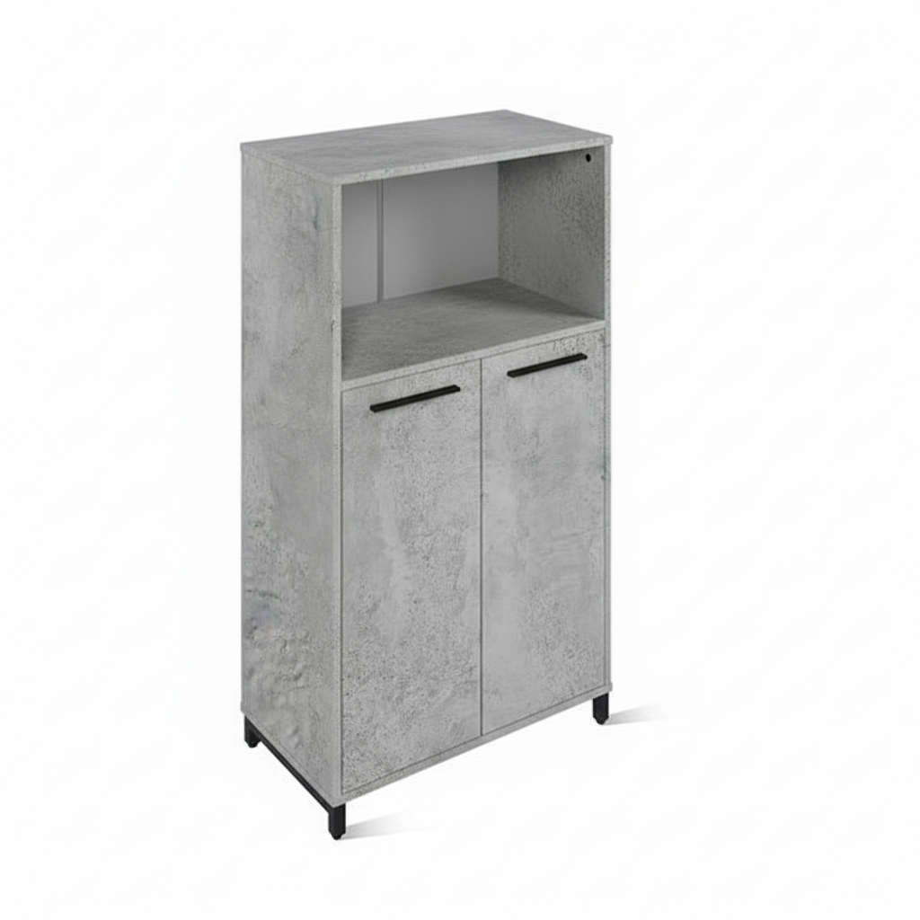Универсальный представитель серии ЛОФТ. Несколько шкафов легко стягиваются между собой и образуют удобную систему хранения. Для плавного закрывания на фасады шкафа устанавливаются мебельные петли с доводчиком. Стильные ручки и цвет дерева Бетон гармонично вписываются в любой интерьер. Высота шкафа 1 170 мм позволяет смело использовать его в качестве перегородки. Перегородка из нескольких таких шкафов функционально делит пространство на зоны и придает изюминку интерьеру. Сочетание открытых и закрытых отделений позволяет организовывать удобное хранение документов и других предметов. Шкаф устанавливается на металлические регулируемые опоры чёрного цвета.