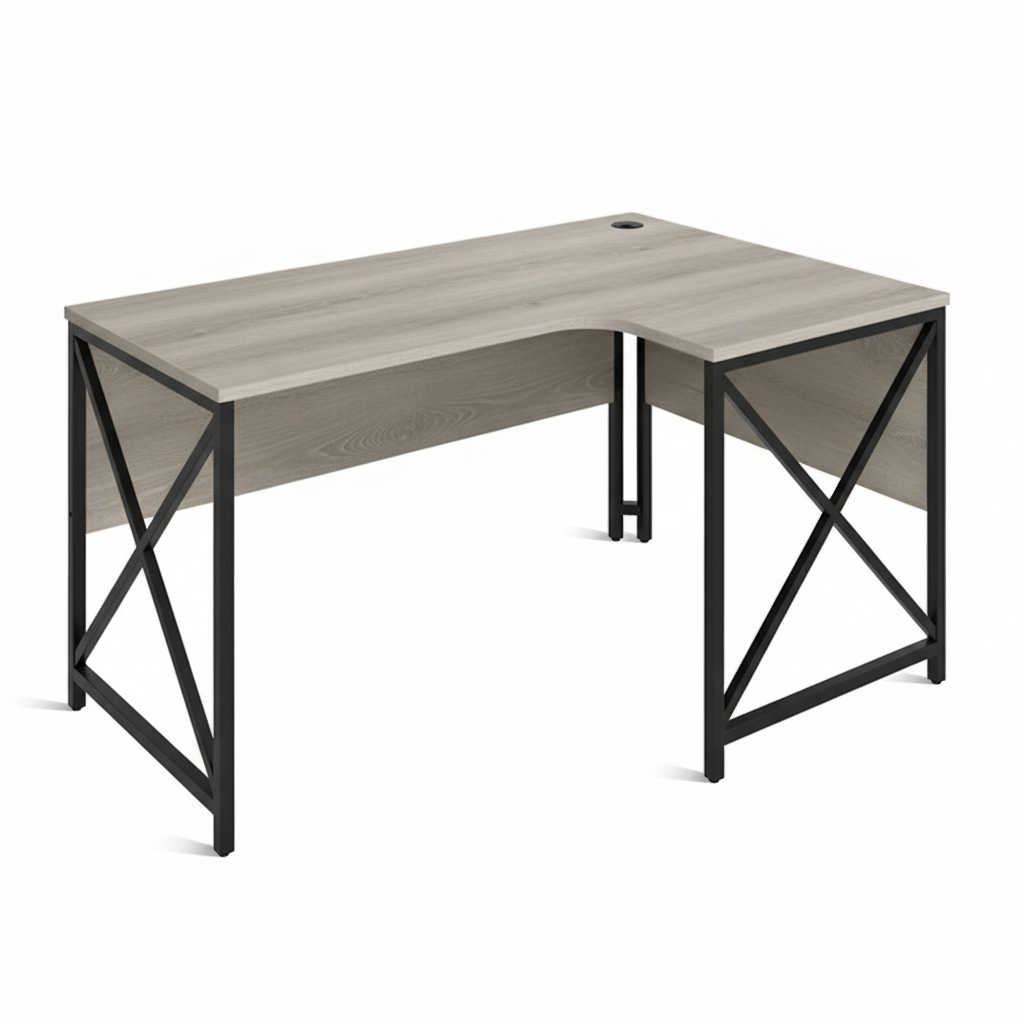 Изделие состоит из столешницы, царг и металлических опор. Крышка стола изготовлена из ЛДСП толщиной 22 мм и облицована ударопрочной кромкой ПВХ 2,0 мм. Она имеет эргономичную форму с радиусом скругления 200 мм в углу. Царги изготовлены из ЛДСП толщиной 16 мм и облицованы кромкой ПВХ 0,4 мм. Опоры стола изготовлены из стального профиля 25х25 мм и 20х20 мм с толщиной стенки 1,2 мм. Детали стола соединены между собой эксцентриковыми стяжками, евровинтами и винтами. На столешнице установлена розетка кабельного канала. На опорах установлены пластиковые заглушки с регулируемыми подпятниками М8. Все