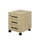 Идеальный способ сделать рабочее пространство более гибким и организованным. Колесные опоры позволяют легко перемещать изделие по комнате и закатывать под стол. Верхний ящик содержит встроенный замок, обеспечивая надежное хранение вещей и документов. В комплекте к замку прилагаются ключ. Чёрные металлические ручки придают тумбе выразительность и создают удобство в использовании. Корпус, исполненный в цвете дерева Дуб Бунратти, гармонично вписывается в любой интерьер. Модель идеально сочетается с рабочим столом серии ЛОФТ.