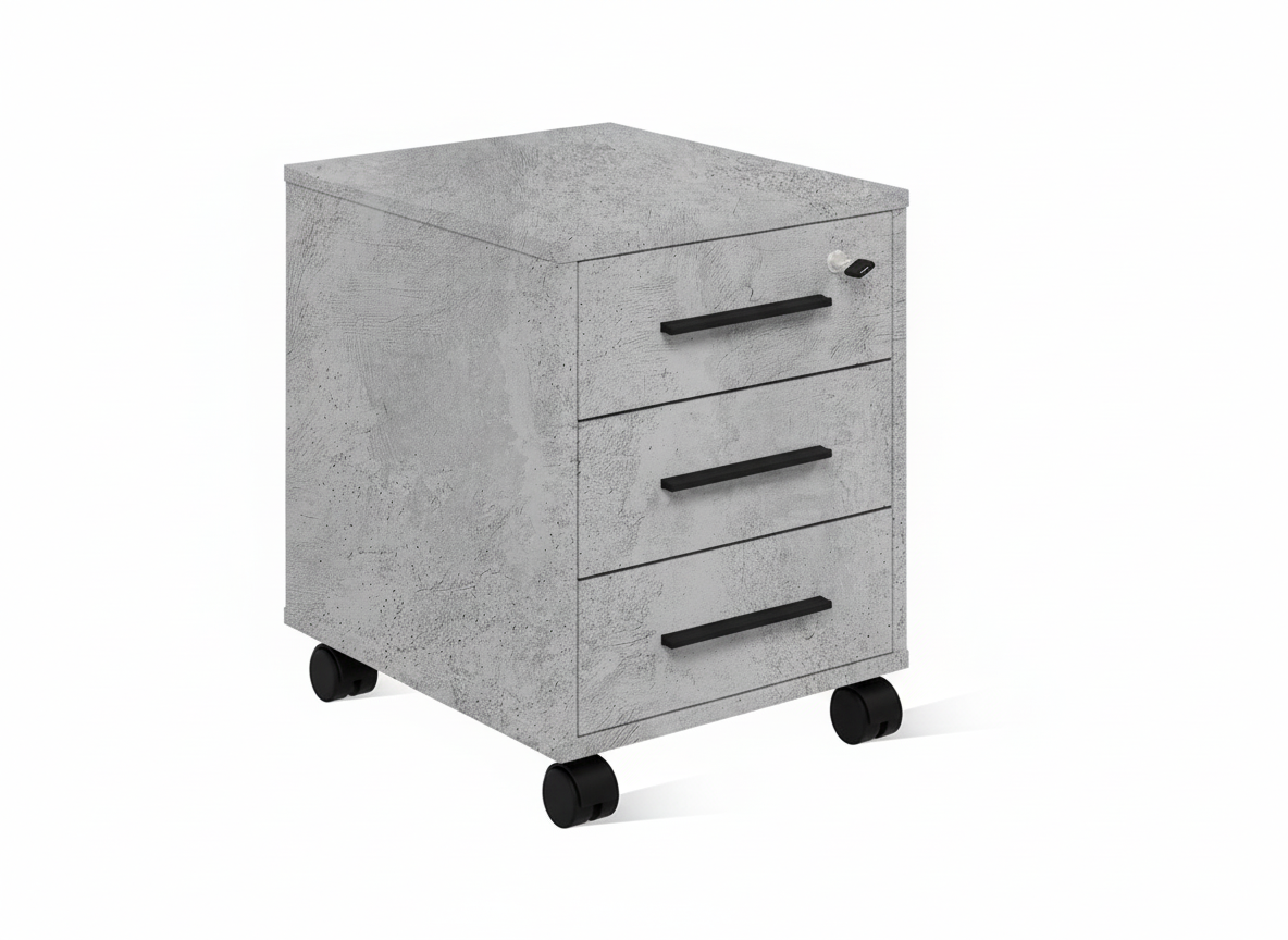 Идеальный способ сделать рабочее пространство более гибким и организованным. Колесные опоры позволяют легко перемещать изделие по комнате и закатывать под стол. Верхний ящик содержит встроенный замок, обеспечивая надежное хранение вещей и документов. В комплекте к замку прилагаются ключ. Чёрные металлические ручки придают тумбе выразительность и создают удобство в использовании. Корпус, исполненный в цвете дерева Бетон, гармонично вписывается в любой интерьер. Модель идеально сочетается с рабочим столом серии ЛОФТ.