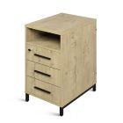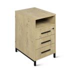 Идеально подходит к эргономичным столам серии ЛОФТ. Верхний ящик имеет встроенный замок, обеспечивая надежное хранение вещей и документов. В комплекте к замку прилагаются ключ. Чёрные металлические ручки ящиков подчеркивают современный дизайн модели. Крышка изготовлена из прочного ЛДСП толщиной 22 мм. Корпус тумбы, исполненный в цвете дерева Дуб Бунратти, гармонично вписывается в любой интерьер. Тумба имеет вверху удобную открытую нишу, где можно расположить предметы, которые всегда нужны под рукой и в быстром доступе. Опоры тумбы металлические в чёрном цвете также подчеркивают стиль Лофт. Благодаря лаконичному дизайну прекрасно сочетается с мебелью из серии ЛОФТ и другими стилями.