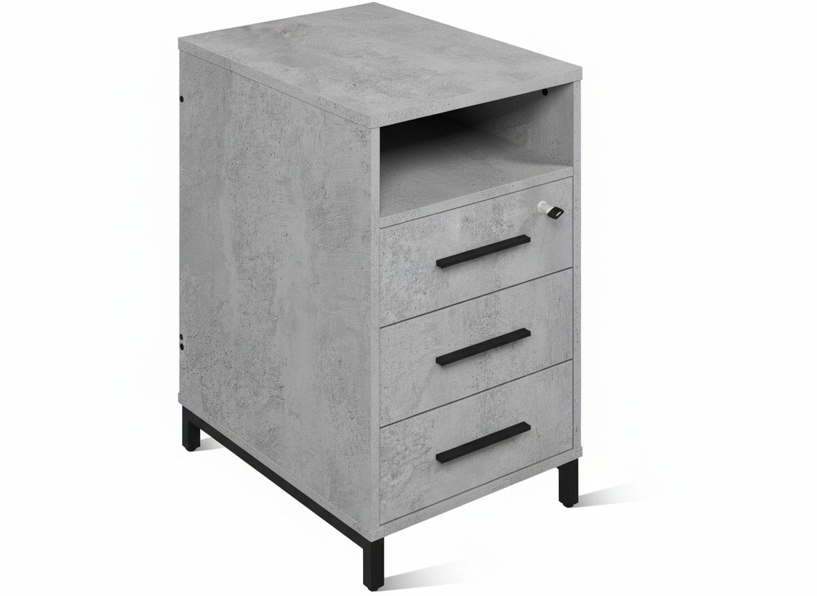 Идеально подходит к эргономичным столам серии ЛОФТ. Верхний ящик имеет встроенный замок, обеспечивая надежное хранение вещей и документов. В комплекте к замку прилагаются ключ. Чёрные металлические ручки ящиков подчеркивают современный дизайн модели. Крышка изготовлена из прочного ЛДСП толщиной 22 мм. Корпус тумбы, исполненный в цвете дерева Бетон, гармонично вписывается в любой интерьер. Тумба имеет вверху удобную открытую нишу, где можно расположить предметы, которые всегда нужны под рукой и в быстром доступе. Опоры тумбы металлические в чёрном цвете также подчеркивают стиль Лофт. Благодаря лаконичному дизайну прекрасно сочетается с мебелью из серии ЛОФТ и другими стилями.