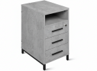 Каркас тумбы изготовлены из ЛДСП толщиной 16 мм. Крышка тумбы изготовлена из ЛДСП толщиной 22 мм. Все элементы изделия облицованы ударопрочной кромкой ПВХ 0,4 и 2 мм. Дно ящиков – ДВПО толщиной 3 мм. Тумба оснащена нишей высотой 144 мм, ящиками – 150 мм – 3 шт. Детали тумбы соединены между собой эксцентриковыми стяжками, евровинтами и винтами. Для плавного выдвижения ящиков применены роликовые направляющие. На фасады ящиков устанавливаются металлические ручки 160 мм. Верхний ящик оснащен замком. Тумба устанавливается на металлическую опору высотой 90 мм. Опора тумбы изготовлена из стального профиля 25х25 мм и 20х20 мм с толщиной стенки 1,2 мм. На опорах установлены пластиковые заглушки с регулируемыми подпятниками М8. Все металлические части покрыты полимерно-порошковой краской. Использование тумбы возможно со столами эргономичными, а также с другими изделиями серии «Лофт». Для изготовления тумбы используется ЛДСП высококачественного класса эмиссии Е1 и качественные комплектующие российских и зарубежных производителей.