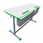Стол ученический двухместный регулируемый по высоте (рост 2-4, 3-7) и наклону столешницы. Объемный фронтон.