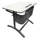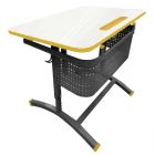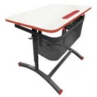 Столешница с радиусными углами 50 мм, изготовлена из ЛДСП, толщиной 16 мм. Торцы столешницы облицованы противоударной кромкой ПВХ толщиной 2,0 мм. Имеет пластиковую пенальницу для учебных принадлежностей, углубленную в столешницу.
