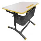 Столешница с радиусными углами 50 мм, изготовлена из ЛДСП, толщиной 16 мм. Торцы столешницы облицованы противоударной кромкой ПВХ толщиной 2,0 мм. Имеет пластиковую пенальницу для учебных принадлежностей, углубленную в столешницу.