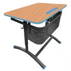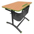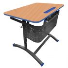 Столешница с радиусными углами 50 мм, изготовлена из ЛДСП, толщиной 16 мм. Торцы столешницы облицованы противоударной кромкой ПВХ толщиной 2,0 мм. Имеет пластиковую пенальницу для учебных принадлежностей, углубленную в столешницу.
