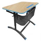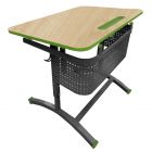 Столешница с радиусными углами 50 мм, изготовлена из ЛДСП, толщиной 16 мм. Торцы столешницы облицованы противоударной кромкой ПВХ толщиной 2,0 мм. Имеет пластиковую пенальницу для учебных принадлежностей, углубленную в столешницу.