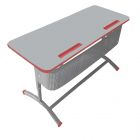 Столешница с радиусными углами 50 мм, изготовлена из ЛДСП, толщиной 16 мм. Торцы столешницы облицованы противоударной кромкой ПВХ толщиной 2,0 мм. Имеет две пластиковые пенальницы для учебных принадлежностей, углубленные в столешницу.