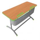 Столешница с радиусными углами 50 мм, изготовлена из ЛДСП, толщиной 16 мм. Торцы столешницы облицованы противоударной кромкой ПВХ толщиной 2,0 мм. Имеет две пластиковые пенальницы для учебных принадлежностей, углубленные в столешницу.