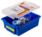 Комплект укомплектован в пластиковую систему хранения, которая закрывается прозрачной пластиковой крышкой на защелках для обеспечения наблюдения за содержимым. Комплект оборудования в системе хранения располагается на ложементе в индивидуальных ячейках.