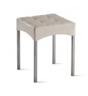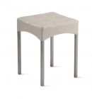 Сиденье табурета выполнено из фанеры толщиной 9 мм, обтянуто поролоном толщиной 20 мм и мебельным текстилем либо мебельным кожзаменителем. Нижняя часть сиденья обита нетканым материалом (спанбондом). Сиденье крепится к каркасу при помощи четырех саморезов 4х25 через металлическую трубу.