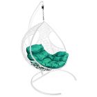 МГКДР-11-04 Подвесное кресло ДОЛЬКА с ротангом белое, зелёная подушка