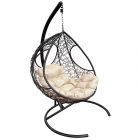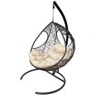 МГКДР-14-01 Подвесное кресло ДОЛЬКА с ротангом чёрное, бежевая подушка