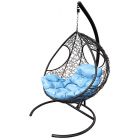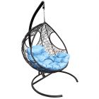 МГКДР-14-03 Подвесное кресло ДОЛЬКА с ротангом чёрное, голубая подушка