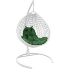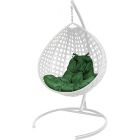 МГККЛР-11-04 Подвесное кресло КАПЛЯ ЛЮКС с ротангом белое, зелёная подушка