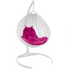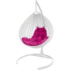 МГККЛР-11-08 Подвесное кресло КАПЛЯ ЛЮКС с ротангом белое, розовая подушка