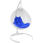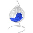 МГККЛР-11-10 Подвесное кресло КАПЛЯ ЛЮКС с ротангом белое, синяя подушка