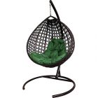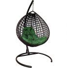МГККЛР-12-04 Подвесное кресло КАПЛЯ ЛЮКС с ротангом коричневое, зелёная подушка