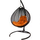 МГККЛР-12-07 Подвесное кресло КАПЛЯ ЛЮКС с ротангом коричневое, оранжевая подушка