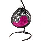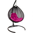 МГККЛР-12-08 Подвесное кресло КАПЛЯ ЛЮКС с ротангом коричневое, розовая подушка