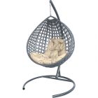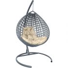 МГККЛР-13-01 Подвесное кресло КАПЛЯ ЛЮКС с ротангом серое, бежевая подушка
