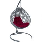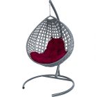 МГККЛР-13-02 Подвесное кресло КАПЛЯ ЛЮКС с ротангом серое, бордовая подушка