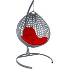 МГККЛР-13-06 Подвесное кресло КАПЛЯ ЛЮКС с ротангом серое, красная подушка
