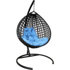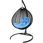 МГККЛР-14-03 Подвесное кресло КАПЛЯ ЛЮКС с ротангом чёрное, голубая подушка
