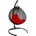МГККЛР-14-06 Подвесное кресло КАПЛЯ ЛЮКС с ротангом чёрное, красная подушка