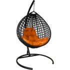 МГККЛР-14-07 Подвесное кресло КАПЛЯ ЛЮКС с ротангом чёрное, оранжевая подушка
