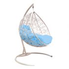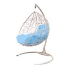 МГККР-11-03 Подвесное кресло КАПЛЯ с ротангом белое, голубая подушка
