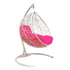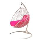МГККР-11-08 Подвесное кресло КАПЛЯ с ротангом белое, розовая подушка