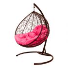 МГККР-12-08 Подвесное кресло КАПЛЯ с ротангом коричневое, розовая подушка