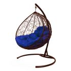 МГККР-12-10 Подвесное кресло КАПЛЯ с ротангом коричневое, синяя подушка