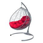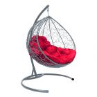 МГККР-13-06 Подвесное кресло КАПЛЯ с ротангом серое, красная подушка