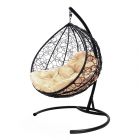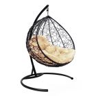 МГККР-14-01 Подвесное кресло КАПЛЯ с ротангом чёрное, бежевая подушка
