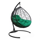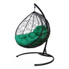 МГККР-14-04 Подвесное кресло КАПЛЯ с ротангом чёрное, зелёная подушка
