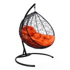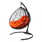 МГККР-14-07 Подвесное кресло КАПЛЯ с ротангом чёрное, оранжевая подушка