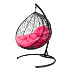МГККР-14-08 Подвесное кресло КАПЛЯ с ротангом чёрное, розовая подушка