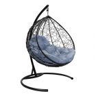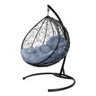 МГККР-14-09 Подвесное кресло КАПЛЯ с ротангом чёрное, серая подушка