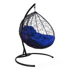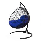 МГККР-14-10 Подвесное кресло КАПЛЯ с ротангом чёрное, синяя подушка