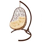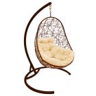 МГКОР-12-01 Подвесное кресло ОВАЛ с ротангом коричневое, бежевая подушка