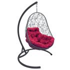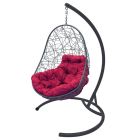 МГКОР-13-02 Подвесное кресло ОВАЛ с ротангом серое, бордовая подушка