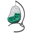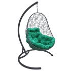 МГКОР-13-04 Подвесное кресло ОВАЛ с ротангом серое, зелёная подушка