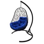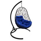 МГКОР-14-10 Подвесное кресло ОВАЛ с ротангом чёрное, синяя подушка