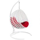 МГКШЛР-11-06 Подвесное кресло КРУГ ЛЮКС с ротангом белое, красная подушка