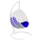МГКШЛР-11-10 Подвесное кресло КРУГ ЛЮКС с ротангом белое, синяя подушка
