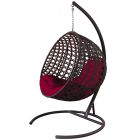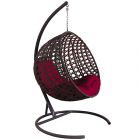 МГКШЛР-12-02 Подвесное кресло КРУГ ЛЮКС с ротангом коричневое, бордовая подушка